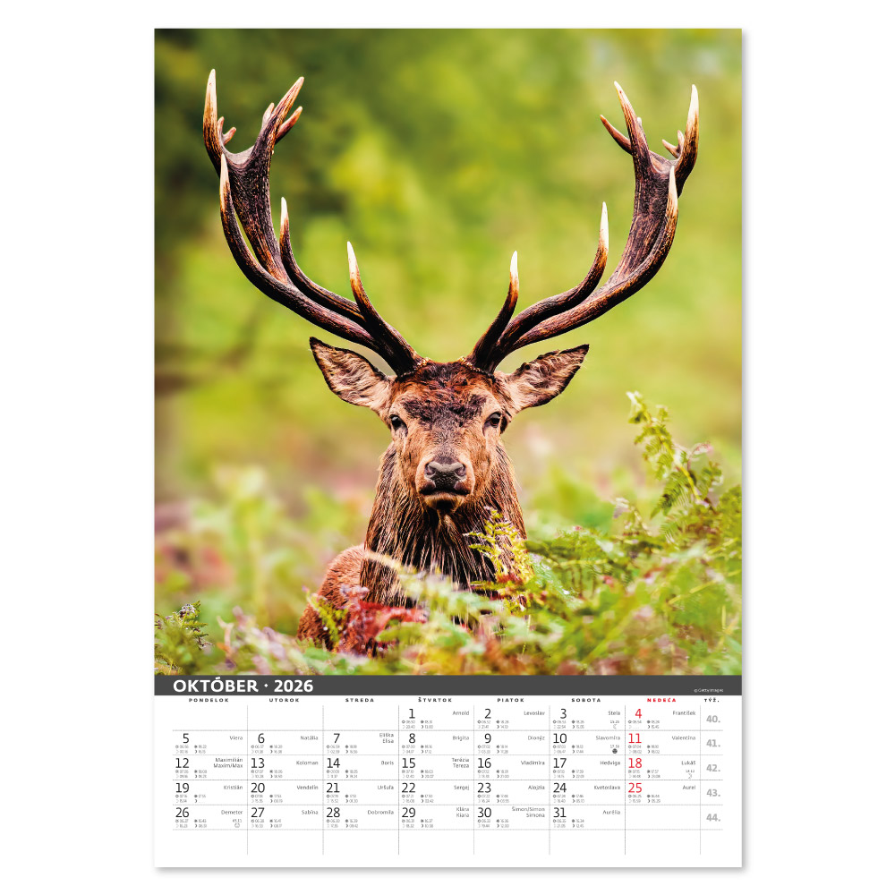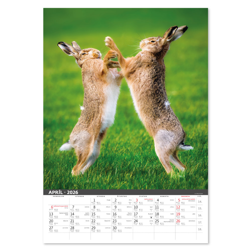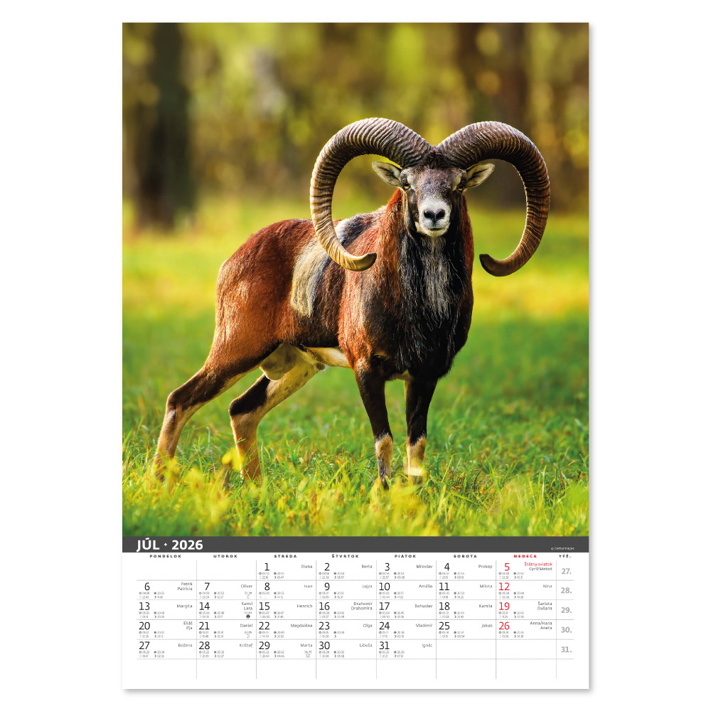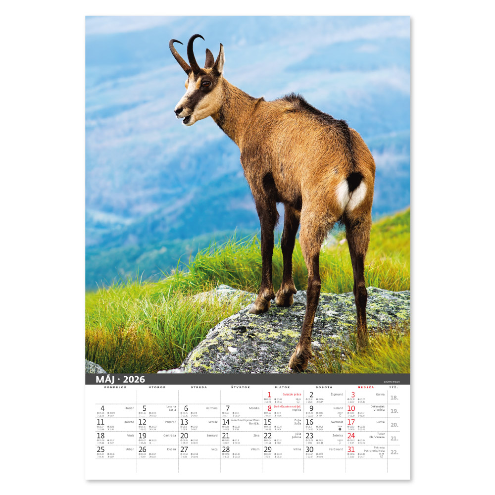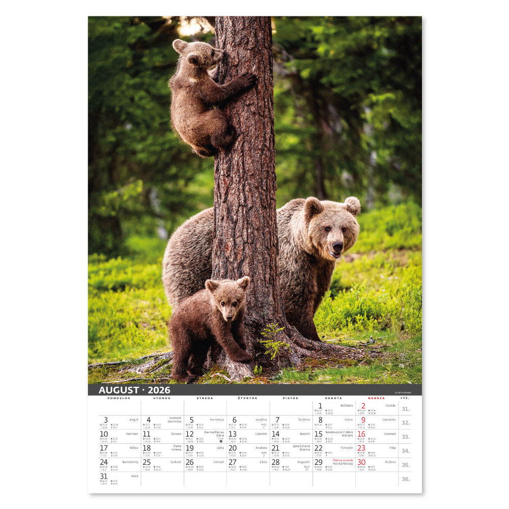 Size: 31.5 x 45 cm Calendar: Slovak monthly nominal Calendar range: 14 sheets Binding: Twin wire Printing area: 31.5 x 7 cm