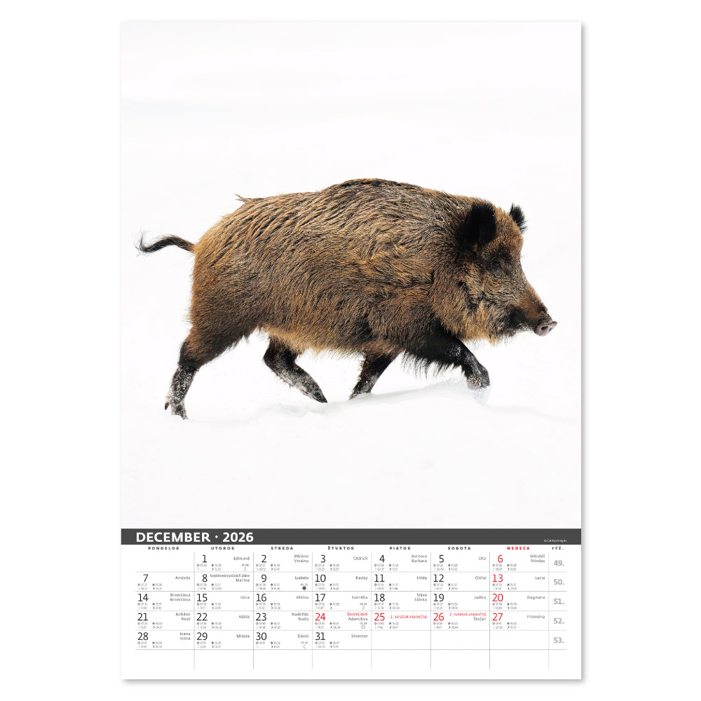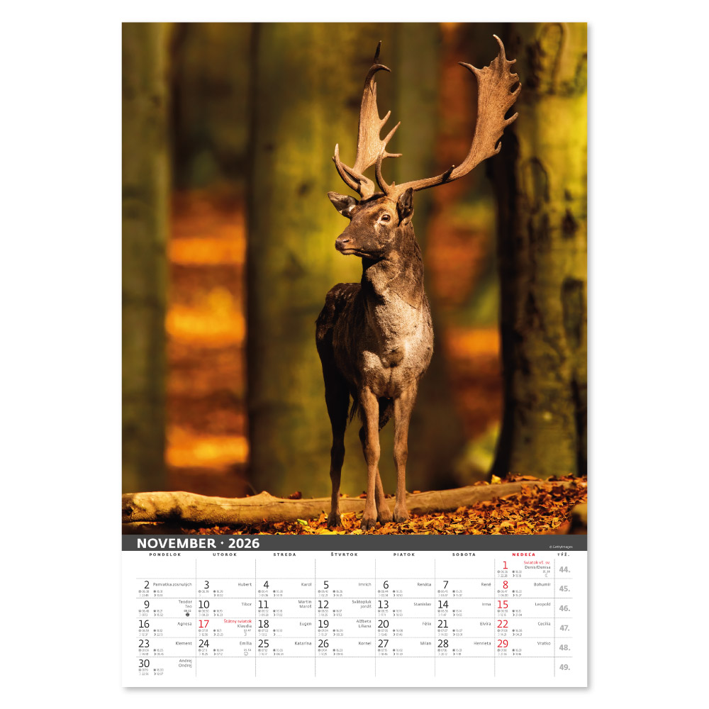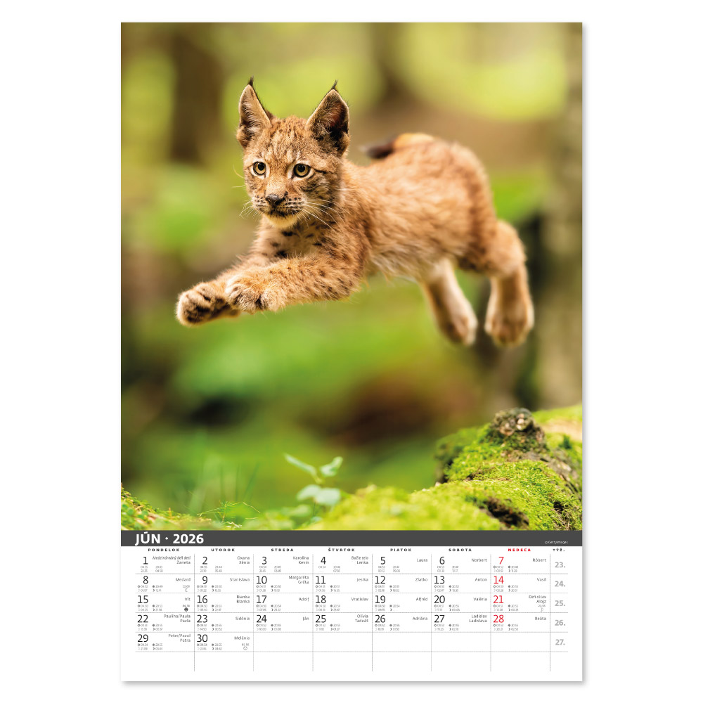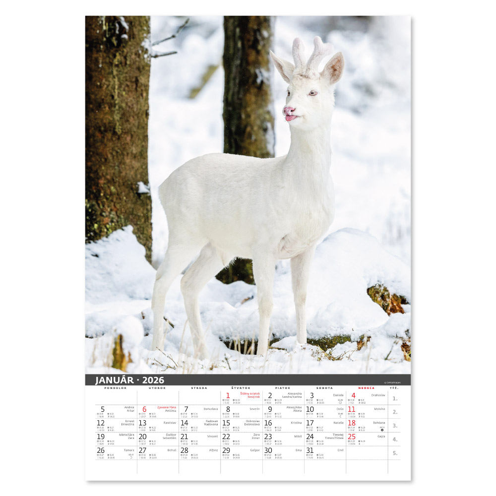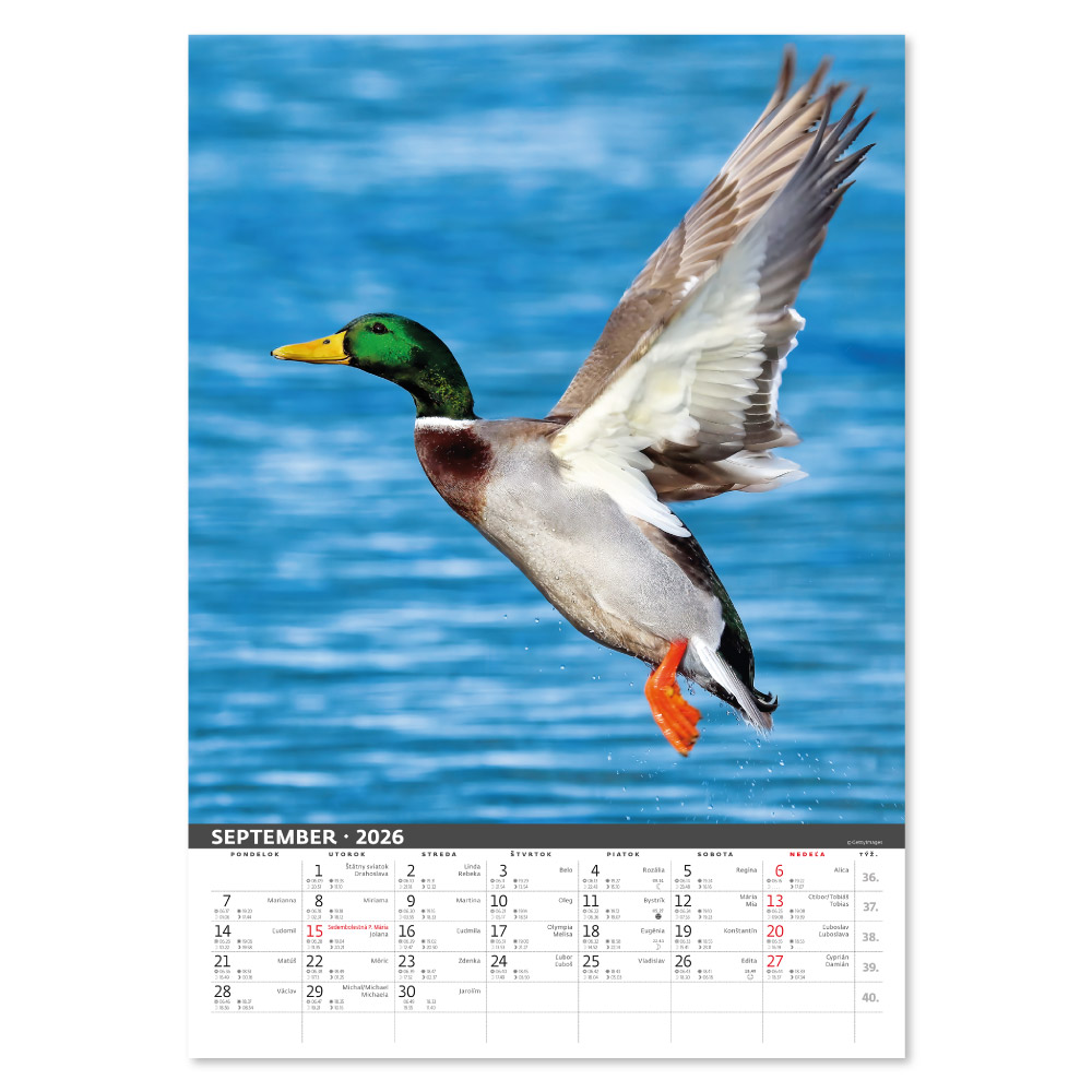 Size: 31.5 x 45 cm Calendar: Slovak monthly nominal Calendar range: 14 sheets Binding: Twin wire Printing area: 31.5 x 7 cm