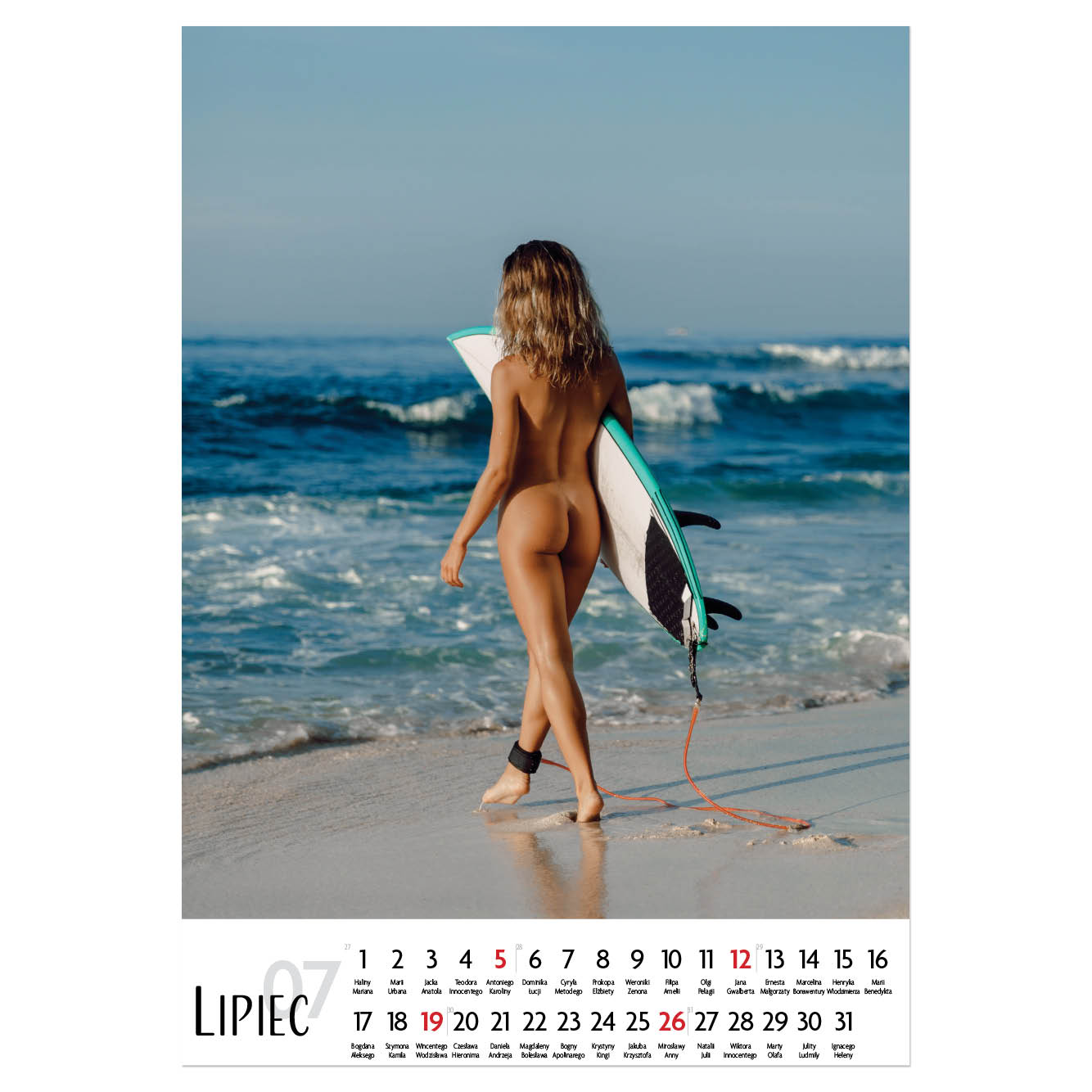 Size: 31,5 x 45 cm Calendar: Polish with names Calendar range: 14 sheets Binding: double spiral Printable area: 31,5 x 7 cm Possibility of printing a logo on each calendar page for FREE (free from 50 pcs).