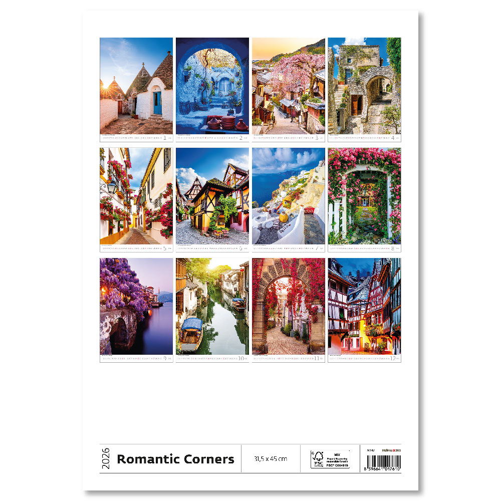 Size: 31,5 x 45 cm Calendarium: Monthly International Number of Pages: 14 Pages Binding: Twin wire Advertising space: 31,5 x 7 cm