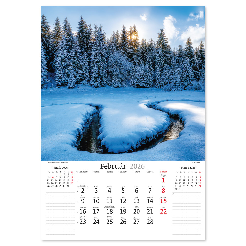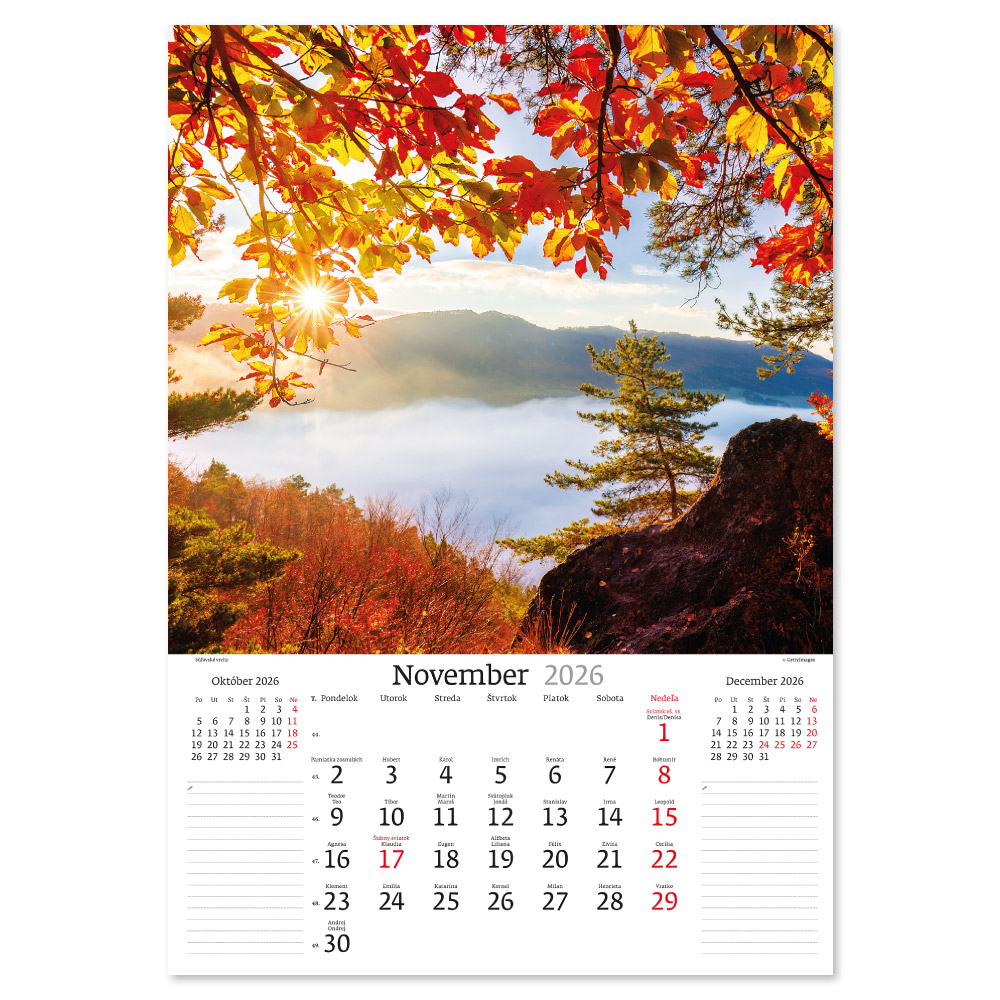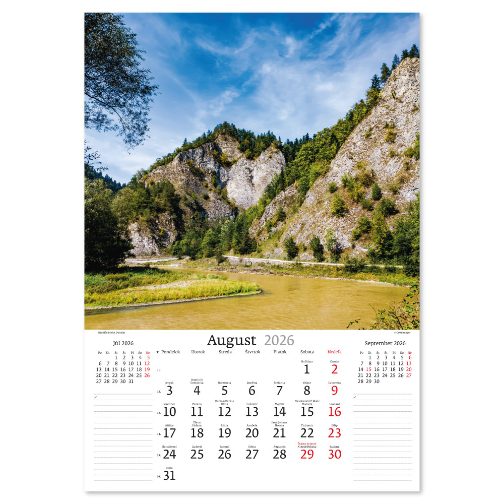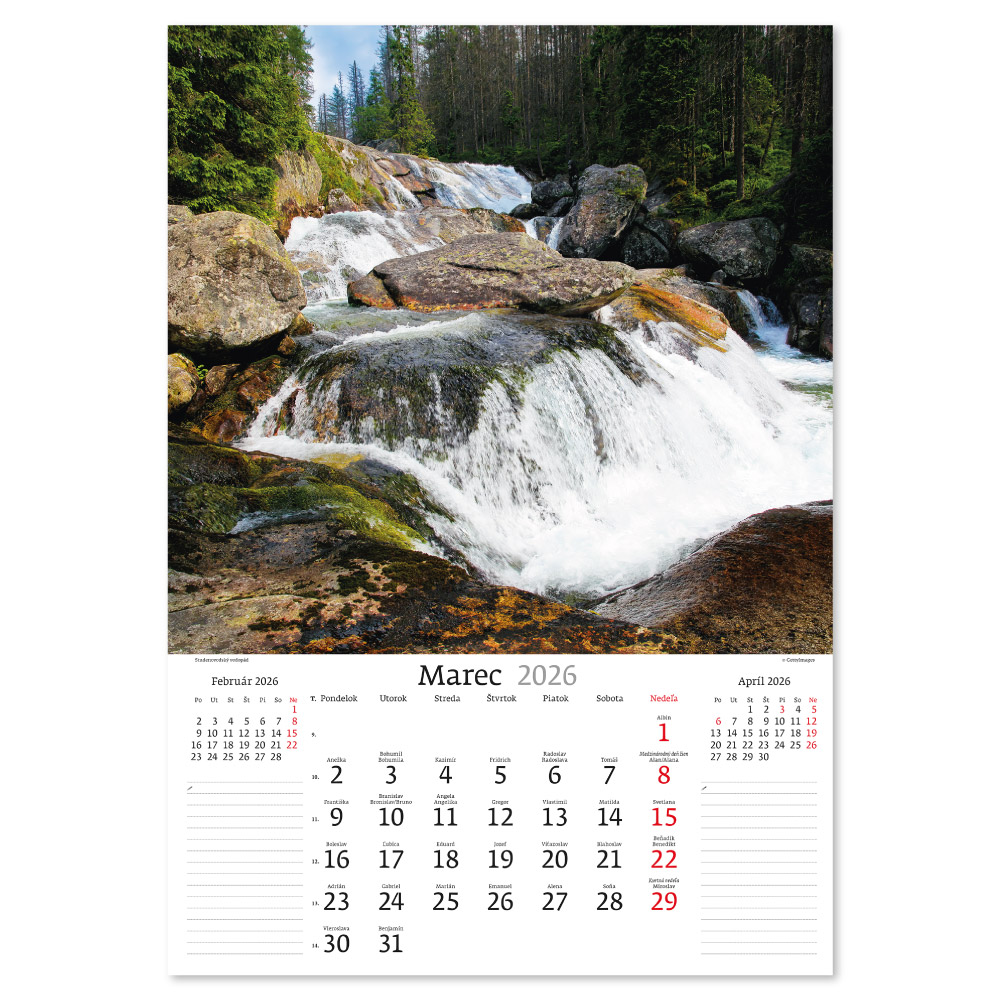 Size: 31.5 x 45 cmCalendar: Slovak 3monthly nominalCalendar range: 14 sheetsBinding: Twin wirePrinting area: 31.5 x 7 cm