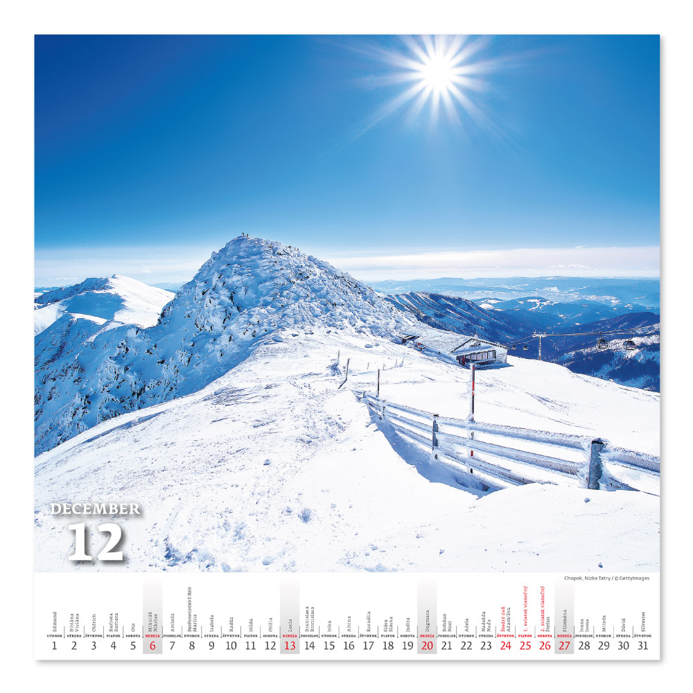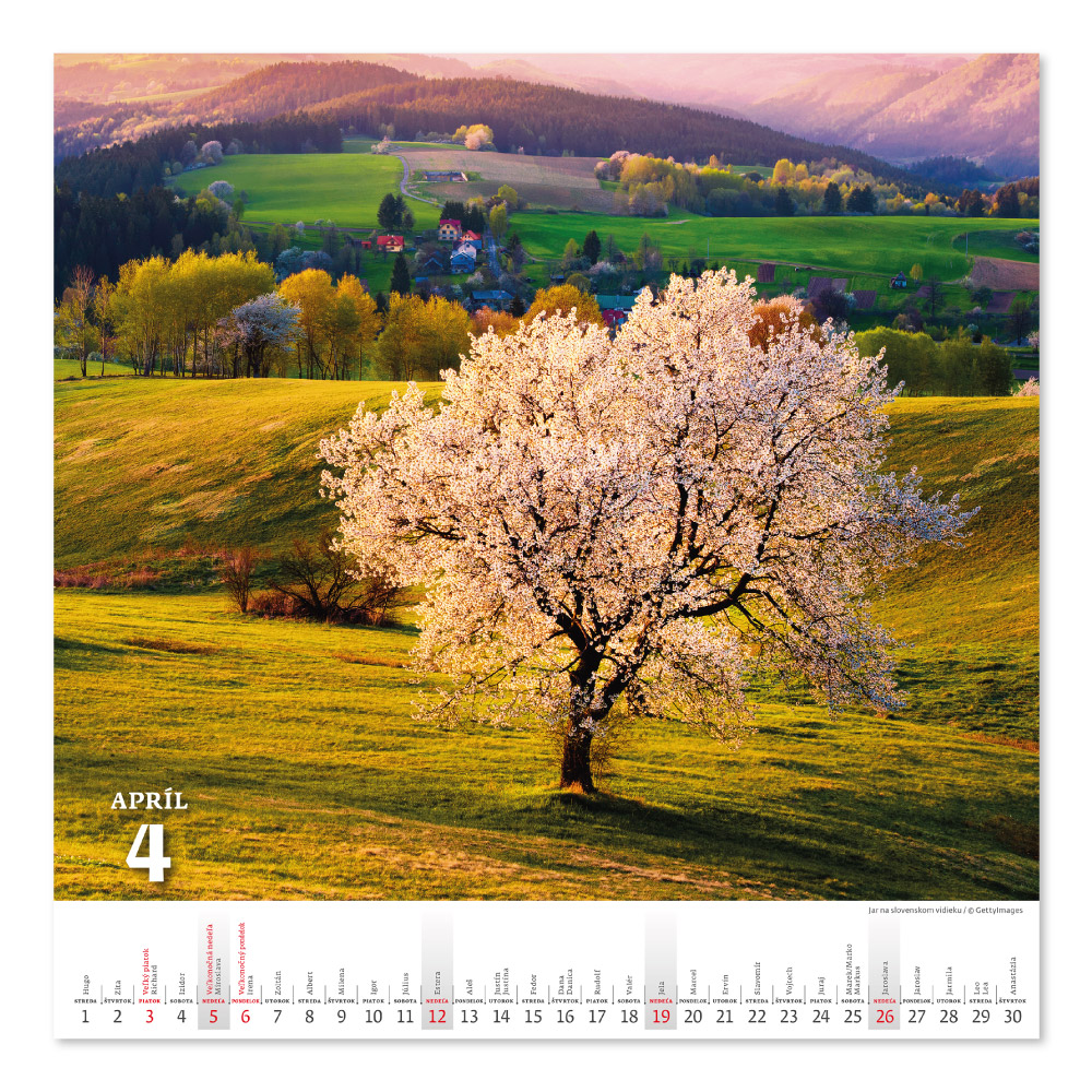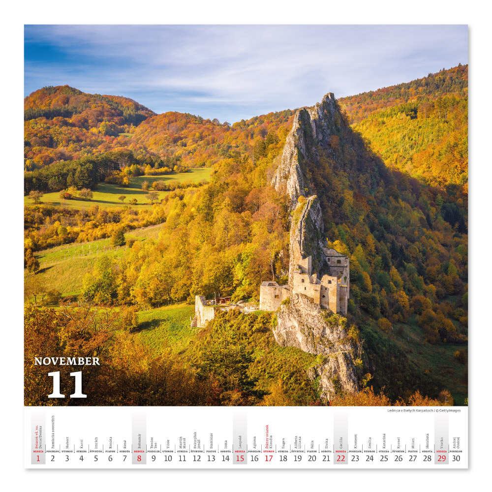 Size: 30 x 30 cmCalendar: Slovak monthly nominalCalendar range: 14 sheetsBinding: Twin wirePrinting area: 30 x 7 cm