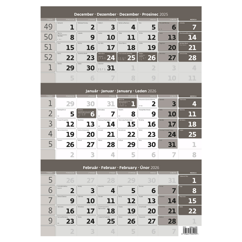 Calendar: Slovakian three-month registered with holidays of selected European states