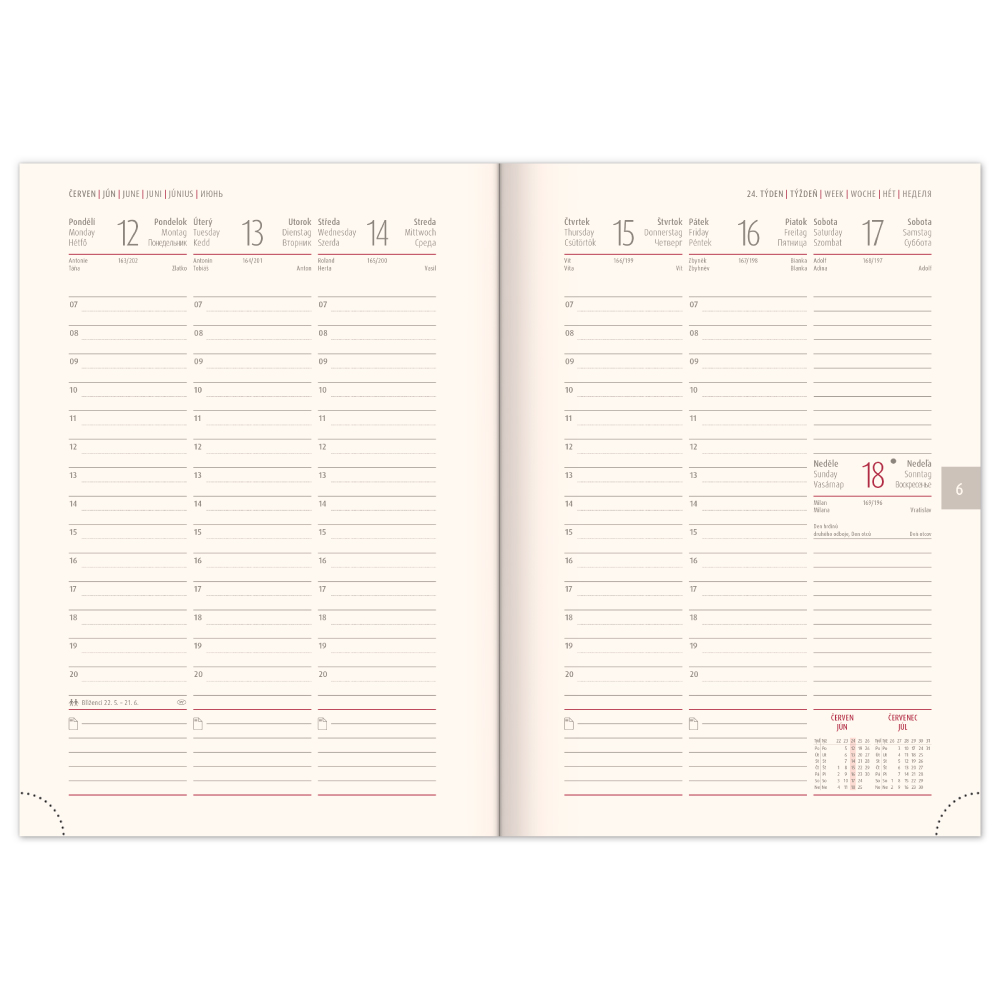 Calendarium: 6 language weekly from December 2022 (CZ, SK, GB, DE, HU, RU)