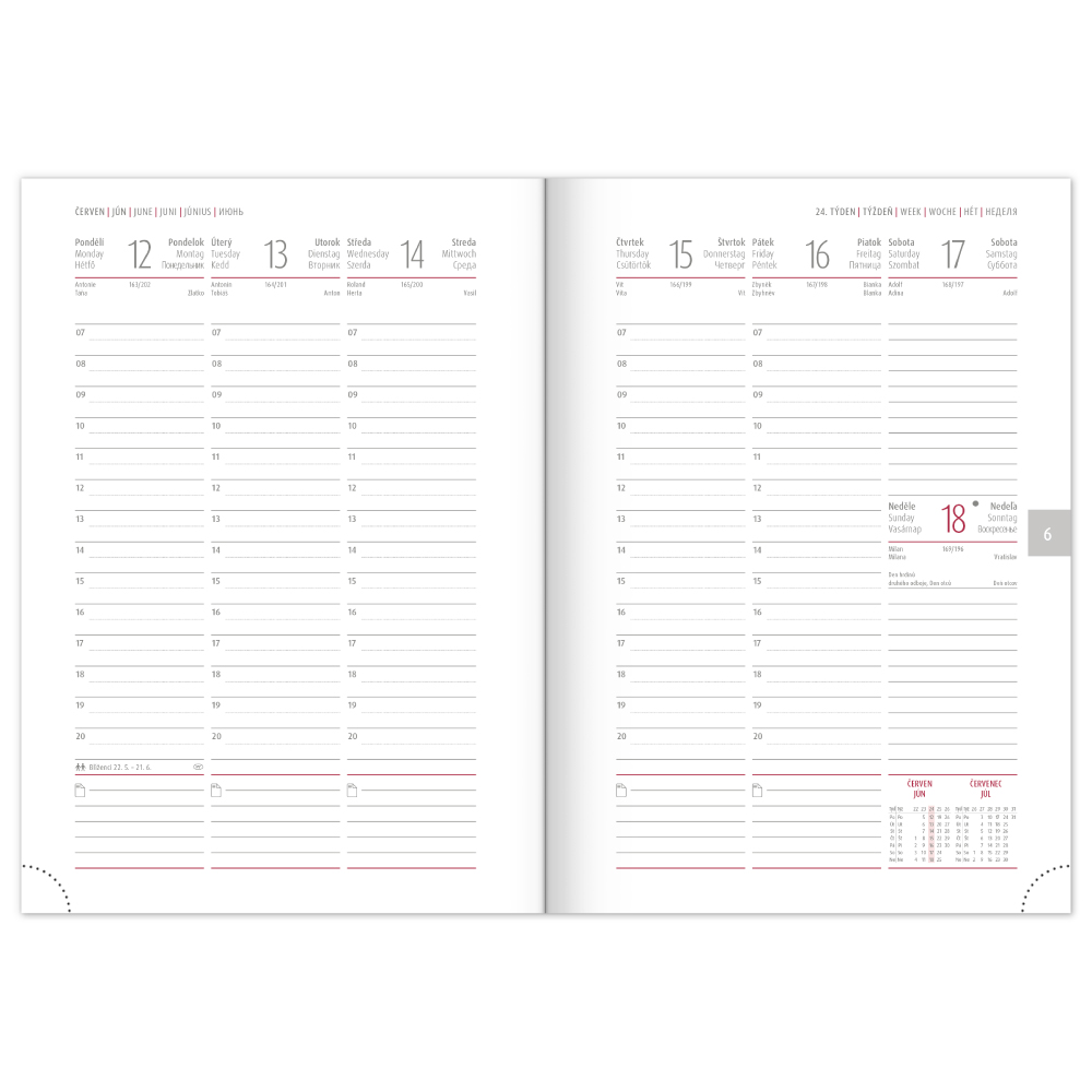 Calendarium: 6 language weekly from December 2022 (CZ, SK, GB, DE, HU, RU)