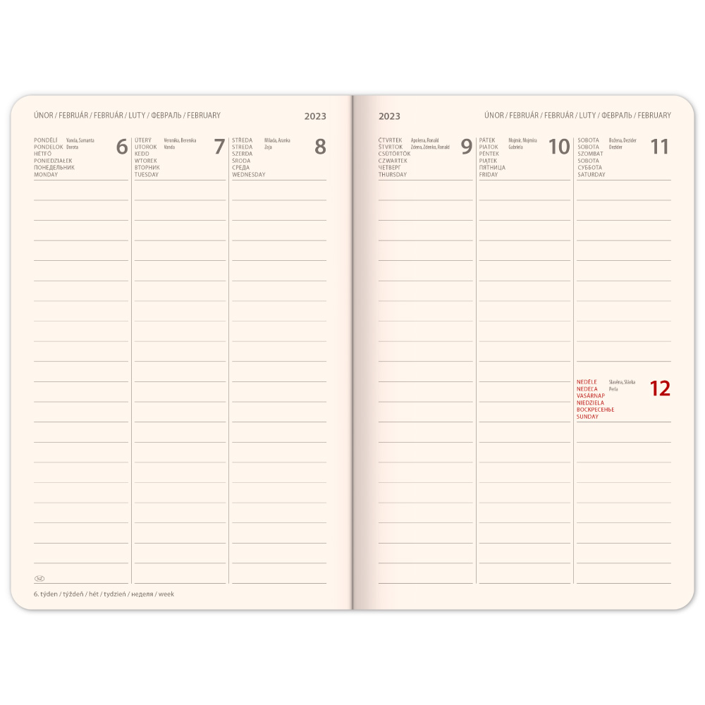 Calendarium: weekly 6language from december 2022 (CZ, SK, HU, PL, RU, EN)