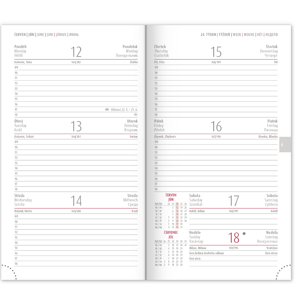 Calendarium: 6 language weekly from December 2022 (CZ, SK, GB, DE, HU, RU)