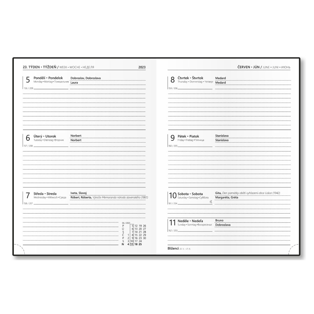 Calendarium: weekly Czech and Slovak with names