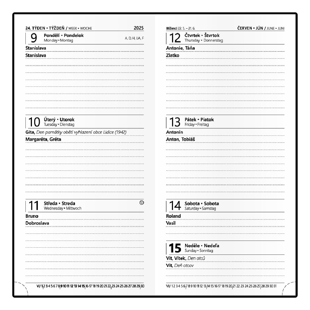 Calendar: weekly Czech and Slovak nominal