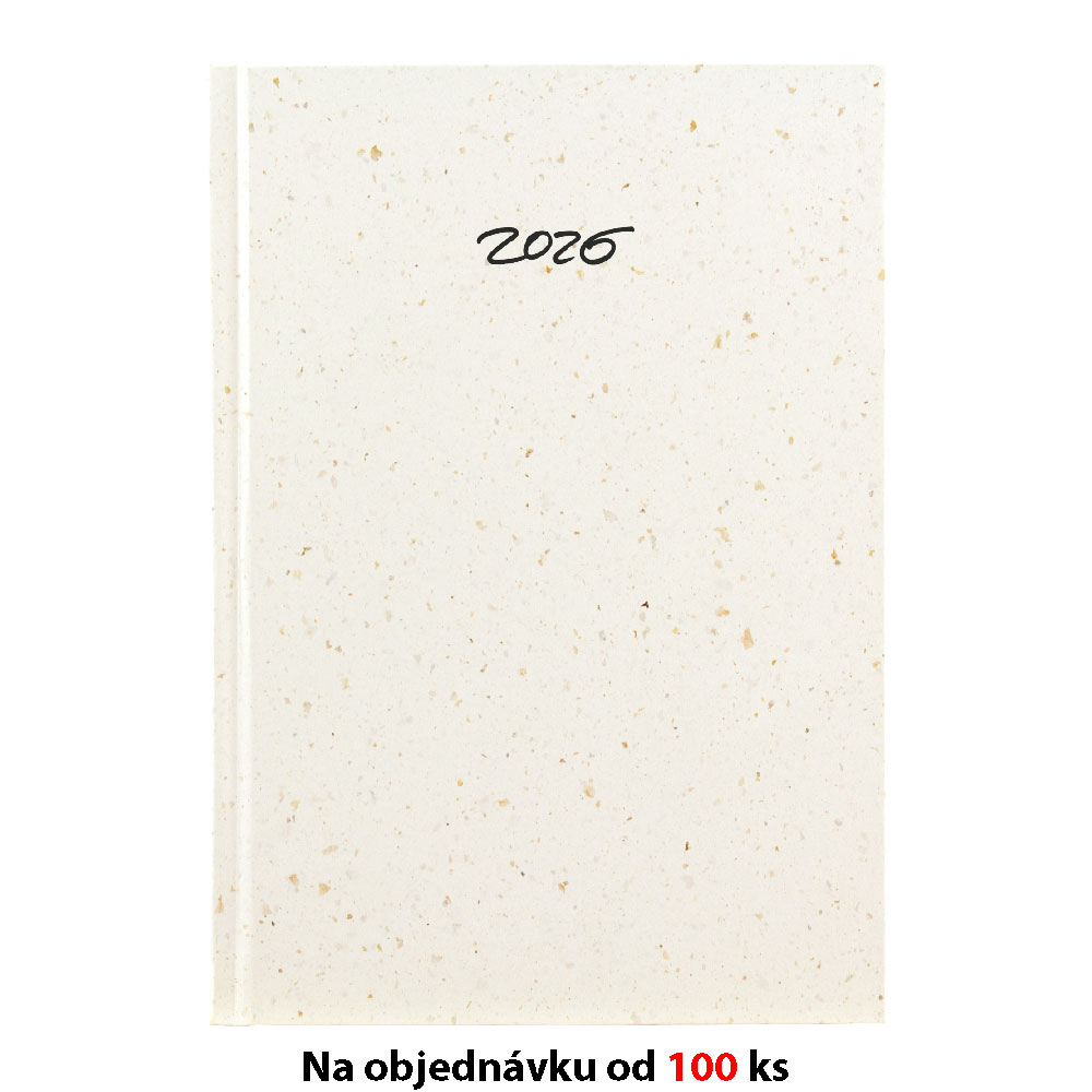 Dimension: 148 x 210 mm Format: A5 Calendar: Slovak weekly + one free page for notes Extent: 128 pages Paper: white Board material: recycled paper, PVC free Main language: Slovak Other languages: SK, EN, DE On order from 100 pcs The paper used for the co