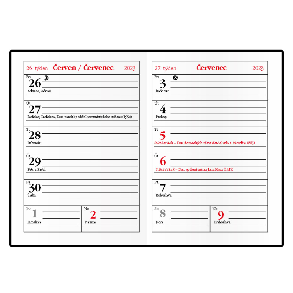 Calendarium: weekly Czech with names
